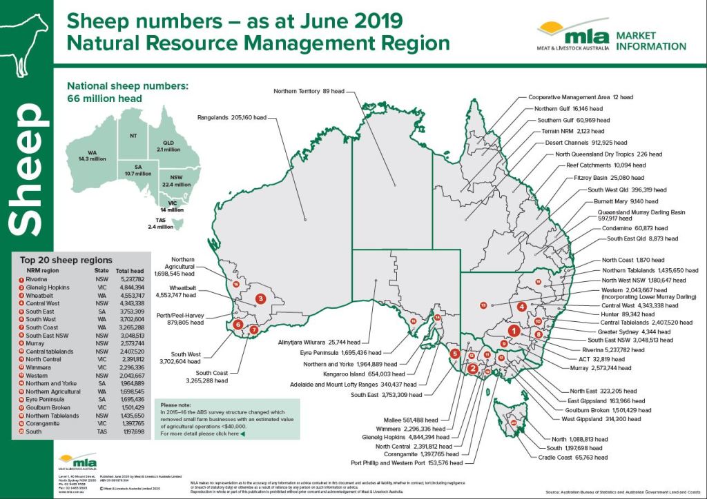 Cattle numbers map – June 2019 – Natural Resource Management Region, Meat and Livestock Australia